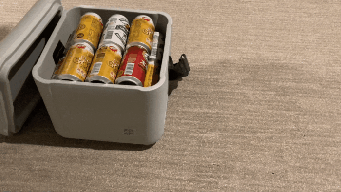 氷の量や外気温、蓋の開閉状況にもよりますが、自社調べでは気温20度ほどの室内での使用なら、 45時間は冷蔵庫内と同じ温度(~6度)を保てました!冷たいジュースやお酒を楽しむのには十分の保冷力です。