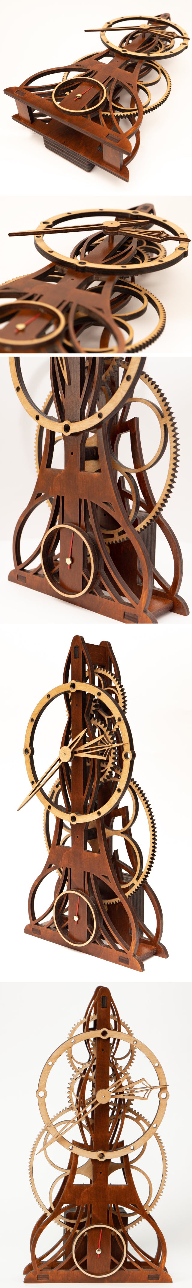 • 歯車や針までもが天然木。あなたの手で組み立てる木製時計。全4種類のデザインです。